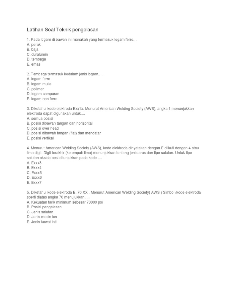 soal dan jawaban pilihan ganda las tig Inilah soal dan jawaban pilihan ganda las tig dan hal lain yang berhubungan erat dengan soal dan jawaban pilihan ganda las tig serta aspek K3 secara umum di